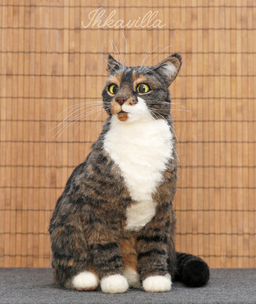 Työni on toteutettu käyttäen neulahuovutus tekniikkaa, jossa pääraakaaineena käytän lampaan villaa, kasvikuituja sekä lemmikkien itsensä omaa karvaa, jos vain mahdollista. Töitä tehdessä minulle on aina ollut tärkeää hahmojen eloisuuden ja liikkeen tunnun välittäminen sekä yksityiskohtien huomioiminen. Jokainen työ on uniikki ja innolla työstetty teos, oli se sitten rakas lemmikki tai suosikki hahmo tv-sarjasta....My work is made using the needle felting technique, where the main raw materials are sheep's wool, plant fibers and pets' own hair if possible. When creating works, it has always been important to me to convey the liveliness and sense of movement of the characters, as well as to pay attention to details. Each work is unique and made with enthusiasm, whether it is a beloved pet or a favorite character from a TV series.
